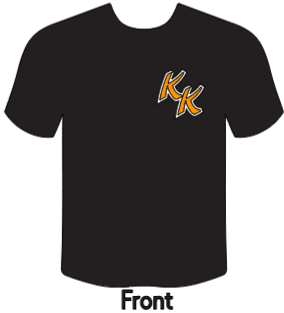 Gilden Heavy Cotton Tee with orange and white logo on the front. Keyes Kustoms with bump side truck on the back.